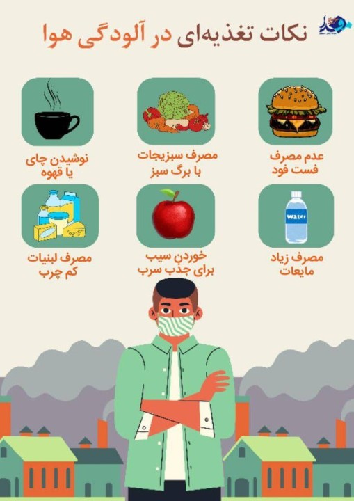 نکات تغذیه ای در زمان آلودگی هوا را در اینفوگرافیک زیر بخوانید
